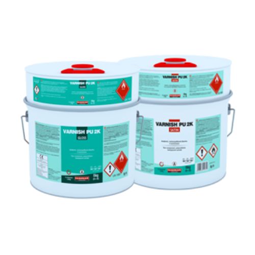 طلاء ذي أساس بولي يوريثين شفاف مكون من مركبين وطبقة نهائية لماعة أو نصف لمعة (ساتين).